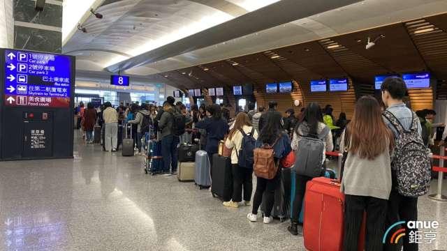 邊境全面解封後,國人春節假期瘋出國旅遊,據統計,國際及兩岸航線總計飛航 5183 架次,載運近 100 萬人次旅客,平均每日入境 3.3 萬人次、出境 4 萬人次,高峰落在農曆春節收假前的 1 月 28 日 8.4 萬人,創 3 年來單日新高。