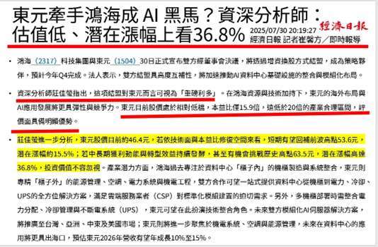 2025.7.30 經濟日報領先預估東元漲幅 36%