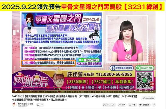 2025.9.22 股市期皇后節目領先預告 (3231-TW) 緯創