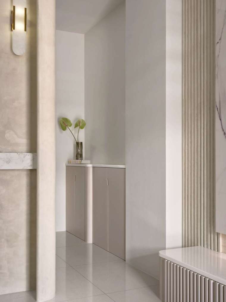 此外,材質在本案中扮演的不只是點綴性角色,而是空間敘事的主體。設計師透過不同紋理、色彩變化,將居住者的個性與情感逐一映現。無論是公領域的開放規劃,還是私領域的內斂沉穩,都在理性與感性之間取得微妙平衡,清楚見證設計的意義,不在於聲量,而在於它如何讓一個家的運作節奏,慢慢與人的心跳重疊,成為世界上獨一無二的存在。
