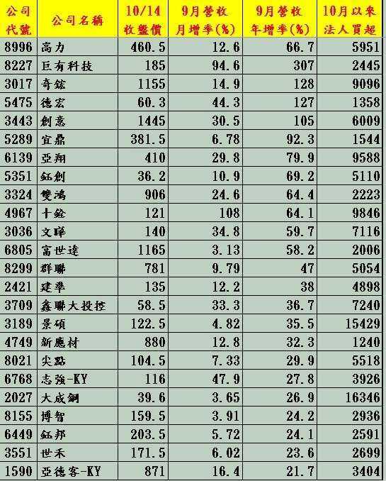 ⊙近月營收年增 + 月增同時具備:營運有支撐才有機會被買盤青睞。月增表示短期動能還在;年增則表示不是短暫熱點。