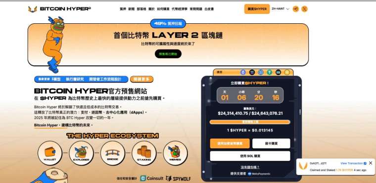 Bitcoin Hyper 已通過 Consult 審計,安全透明度達業界高標準。其預售進度迅速突破 2,400 萬美元,代幣價格維持在 0.013145 美元。項目採非託管架構,保障用戶資產安全,同時顯著提升交易速度並降低手續費。隨著 DeFi 與 GameFi 領域對比特幣可擴展性需求攀升,Hyper 代幣正成為連接 BTC 與 Solana 兩大生態的關鍵橋樑。這不僅是一場技術創新,也代表比特幣功能性的進化,從價值儲藏向實際應用的全面轉型。