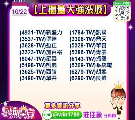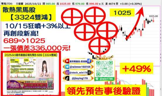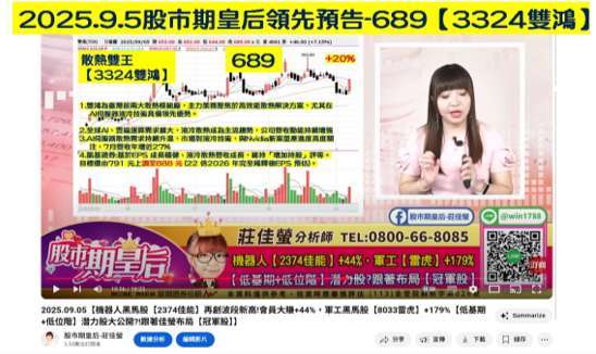 2025.10.17 佳螢在股市期皇后中公開預告的【鑽石股必勝攻略】中,GB300 擴散效應的個股,散熱(3324-TW)雙鴻逆勢攻上千元,正式晉升為千金股。