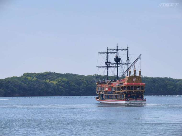 搭乘近鐵電車在賢島站下車,走路 2 分鐘即可抵達「賢島西班牙遊船」停泊的碼頭,這是一艘仿造 16 世紀西班牙帆船打造的觀光遊覽船,豔紅的船身、雪白船帆與金色華貴的船體裝飾,在英虞灣的海面上閃閃發亮。