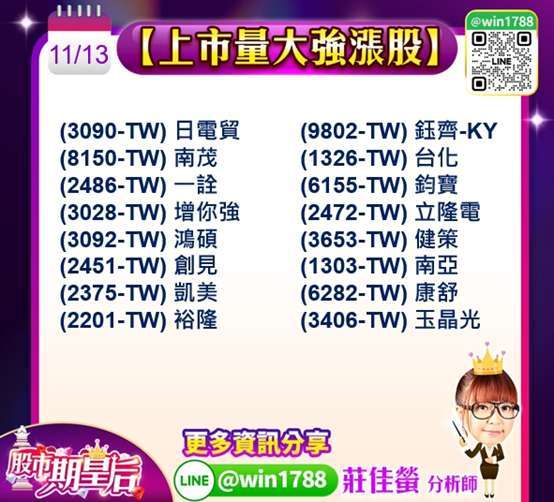 被動元件,受惠漲價效應湧現下,全面噴發,被動元件龍頭 (2327-TW) 國巨勁揚 4.3%,先前一在強調併購效應湧現下,先併購 (6137-TW) 茂達,在併購日商之浦電子後,11 月起 11 月鉭質電容漲價效應發酵 股價向上衝,加上公布 2025 年第三季財報,繳出優於預期的營運成績。單季 EPS 達 3.10 元,季增 27.2%、年增 12.8%,創近 12 季新高。累計前三季 EPS 達 8.22 元,年增 6.3% 受惠 AI 伺服器與車用工業領域需求暢旺,鉭電容產品獲美系客戶積極拉貨,法人預期併購效益與產業地位穩步提升,法人目標價更上看 300 元,