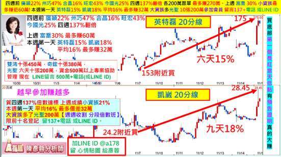 賀本欄預告 竹陞科 (6739-TW) ,德宏 (5475-TW),國精化 (4722-TW),金居 (8358-TW),南電 (8046-TW) 全部兩個月翻倍 100%。雙鴻 (3324-TW)15 天大漲 309 元! 東元 (1504-TW)1.5 個月翻倍 100%! 南亞科 (2408-TW),華邦電 (2344-TW) 全翻倍。10 月 21 日早上 7:30LINE 粉絲團預告 旺宏 (2337-TW),四天 43%! 台燿 (6274-TW) 八天漲百元,近期在廣播節目 YT LINE,與本欄預告 光聖 (6442-TW) 大飆 200 萬 (七天),富喬 (1815-TW) 九天 30%,英特磊 (4971-TW) 漲停,好友想要領先於 每天早上九點前 得知當天誰有機會連續長紅漲停? 1-2 個月後資金翻倍 100%,歡迎點下面連接 加 LINE 留言 777+1 可領先得到提醒。