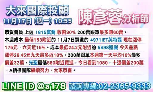 4 月 8 日提醒 115 以下買點,果然 10 張 100 萬入手。 最近提醒 195 附近買點又拉 70 元。243 如站不穩別買太早? 歡迎加 LINE 留言 2317+1 索取研究報告掌握下個 100 萬機會?