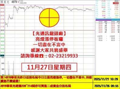 光通訊龍頭廠華星光 (4979-TW):昨日 209 元低接買進,今日立馬開心賺漲停,真的是太棒了,讚!