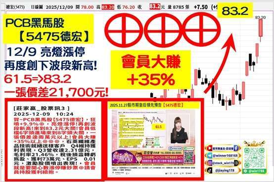 (5475-TW) 德宏,61.5=>83.2,領先預告後大漲 35%,為台灣前三大玻纖布廠,主力產品涵蓋印刷電路板及玻璃布,深耕 AI 伺服器與網通裝置供應鏈,近期營收年增率顯著上升,反映產業需求強勁,(1303-TW) 南亞,調漲 CCL 與 PP 產品 8%,加上 AI 伺服器與高速網通需求持續升溫,帶動 PCB 產業鏈買氣,法人看好高階玻纖布供不應求、產能利用率提升。