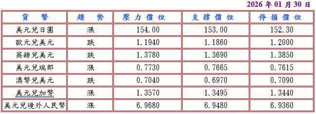 隨後美國公布上周初請失業金人數降至 20.9 萬人,且得益於人工智能 (AI) 領域支出熱潮,第三季非農業生產環比年率確認為 2023 年第三季以來最快增速 4.9%,11 月耐久財訂單則修正增長 5.3% 持平前值及工廠訂單增加 2.7% 優於預期,但資本財進口大增推動,美國 11 月貿易逆差擴大至 568 億美元,幅度創近三十四年來最大,或使第四季經濟增長預期下調,而且美國總統川普下周將宣布下任 FED 主席,並再抨擊利率過高,打擊美元兌日圓至 152.67 低點。預估今日美元兌日圓支撐於 152.80-153.00,阻力於 154.00-20。