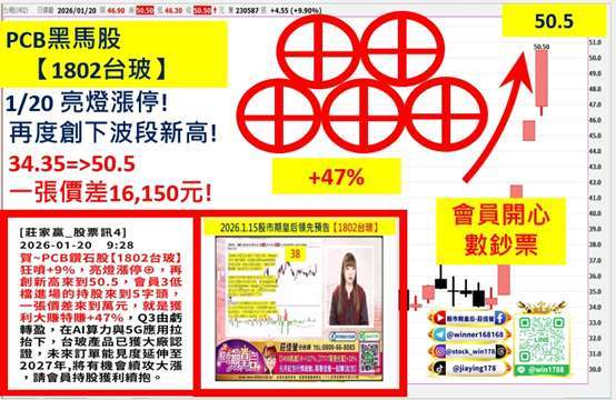 2026.1.2 佳螢領先預告的元月五大明星股再度點火向上,漲價缺貨的 PCB 族群再度噴動噴出,另外低軌道衛星以及光通訊股也強勢表態向上!