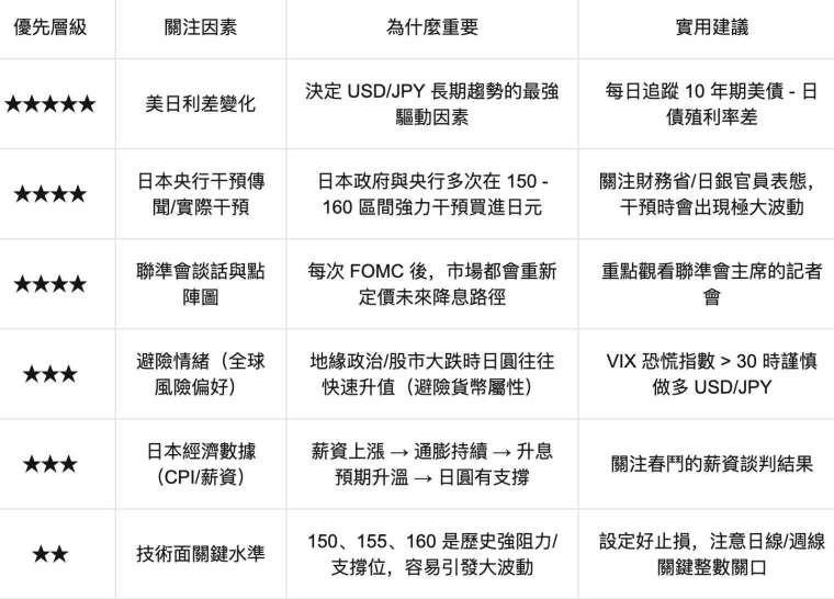 交易美元日幣匯率必須關注的六大指標