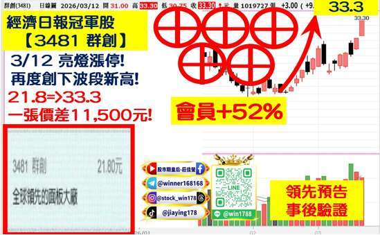 盤面族群方面,漲價概念股再度成為市場焦點,記憶體模組廠 (8271-TW) 宇瞻,在 AI 應用需求快速擴張帶動下強勢噴出,股價亮燈漲停,短短兩個交易日已拉出兩根漲停板,公司指出,隨著 AI 伺服器與高效能運算需求大幅增加,自 2025 年第三季起便積極擴大採購記憶體晶片,庫存金額明顯提高,並透過現貨市場補充需求,帶動整體採購成本上升,也反映市場供給仍偏緊,此外,面板與低軌衛星題材也持續發酵,(3481-TW) 群創,股價再創波段新高,在資產活化與營運轉型題材帶動下,市場對其長期成長動能抱持樂觀態度。